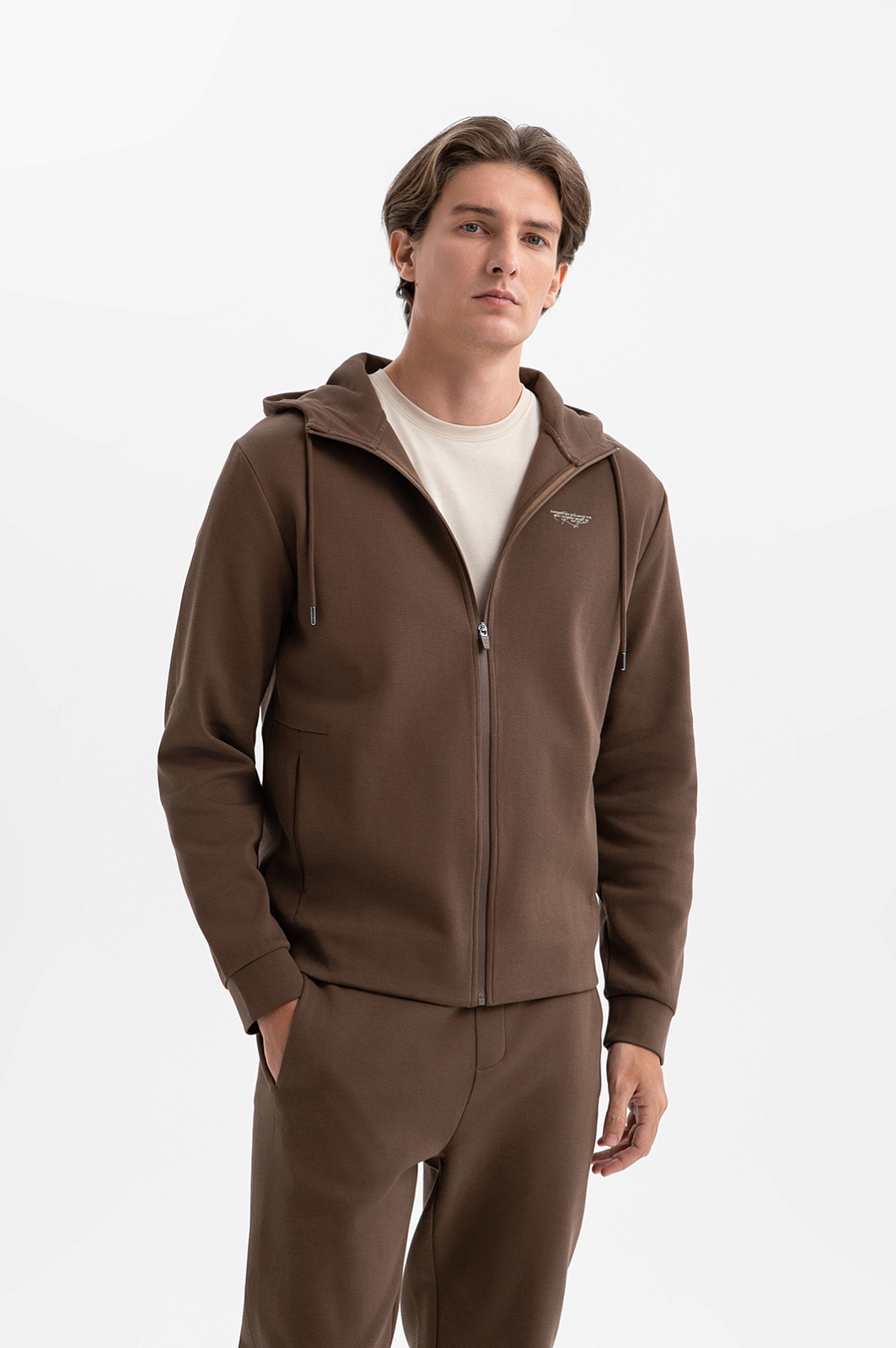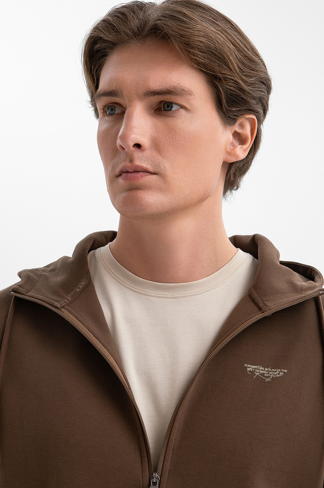 Толстовка на молнии с капюшоном, цвет коричневый, цена 10 990 руб. - купить в интернет-магазине KANZLER