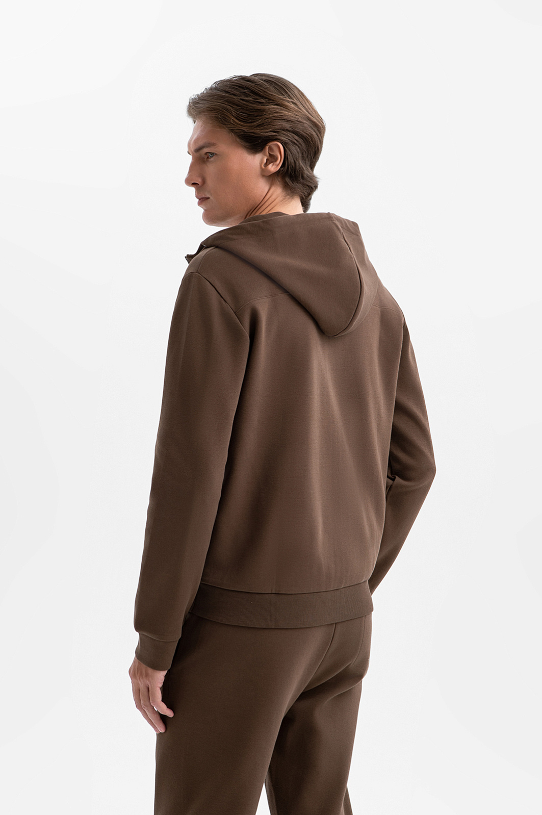 Толстовка KANZLER оттенка шоколада на молнии с капюшоном — универсальная спортивная модель в монохромном исполнении. Сдержанный функциональный дизайн без акцентных деталей делает её идеальной основой повседневного гардероба. Лаконичный силуэт легко сочетается с джоггерами, джинсами и неформальными брюками. Плотный высококачественный трикотаж из гипоаллергенного хлопка с добавлением полиэстера и спандекса — мягкий, прочный и эластичный материал. Он хорошо держит форму, комфортно ощущается на теле и подходит для динамичного ритма дня.
