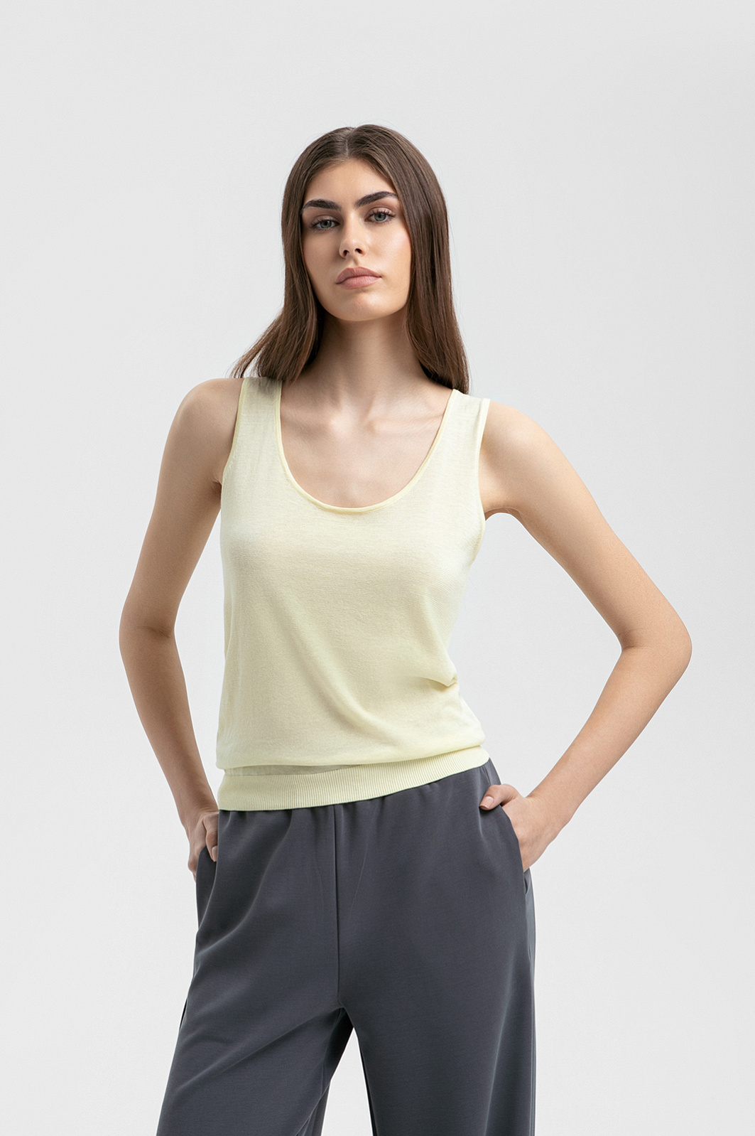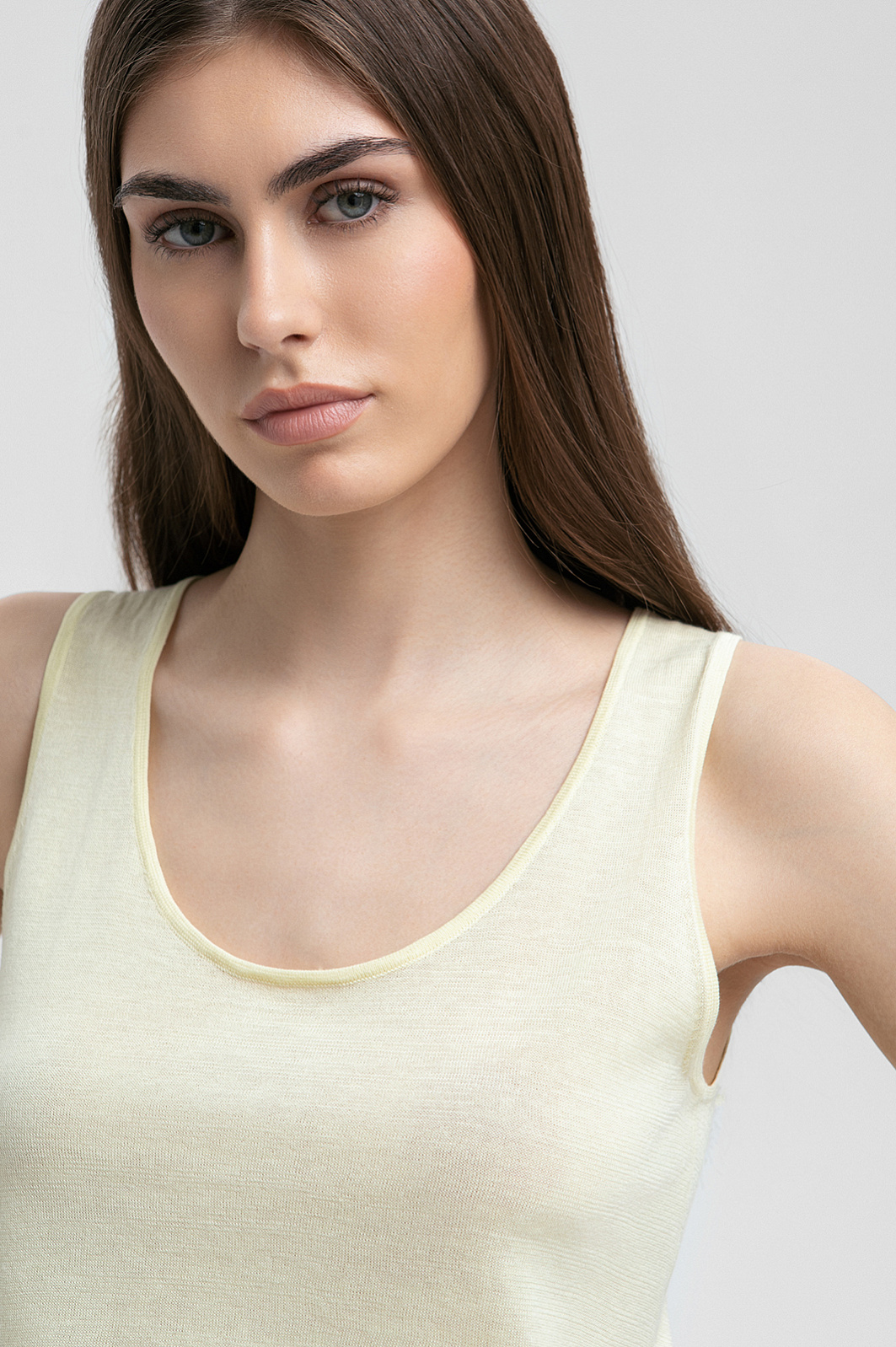 Топ из хлопка, шелка и льна, цвет желтый светлый, цена 4 990 руб. - купить в интернет-магазине KANZLER