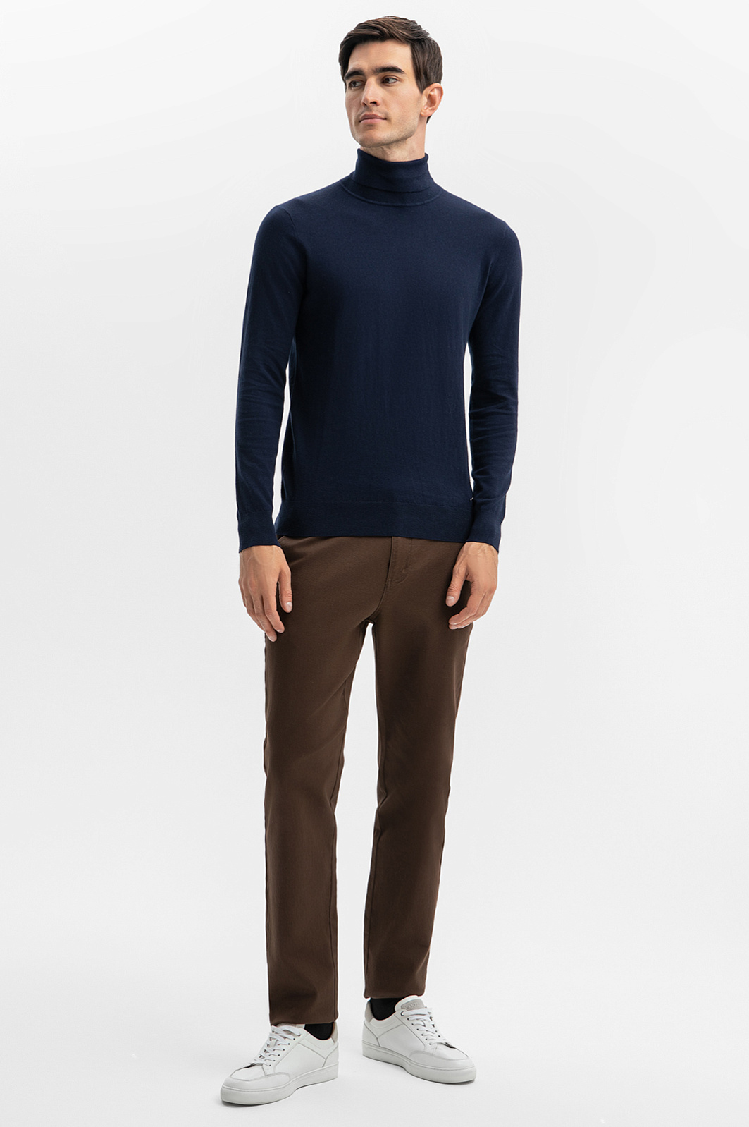 Классическая водолазка KANZLER обрела статус роскошной вещи за счет использования изысканного смесового материала, который объединил достоинства натуральных волокон хлопка и ценного дорогого кашемира. Воздухопроницаемый хлопок поддерживает оптимальную для тела температуру. Нежный кашемир создает ощущение нежного мягкого прикосновения и сохраняет естественное тепло тела. Аккуратную посадку обеспечивают широкие трикотажные резинки. Универсальная модель глубокого синего цвета гармонично смотрится с одеждой благородных естественных оттенков. Параметры модели: рост 192, 101-76-97 Размер на модели: M